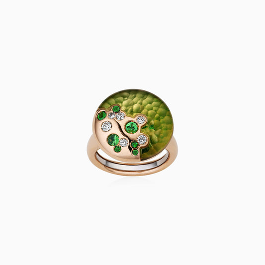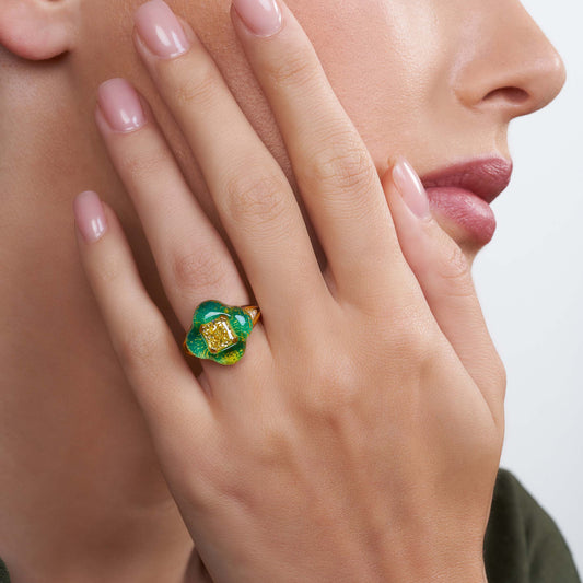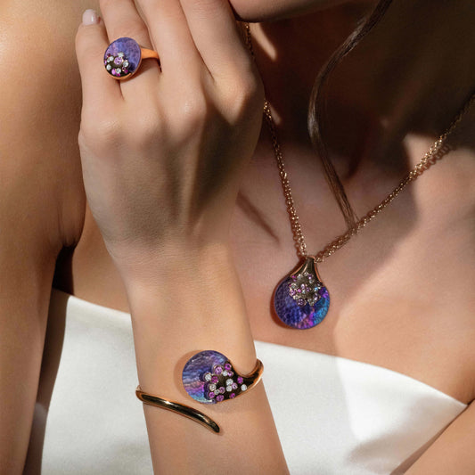 Using the intricate technique of inlay, the alchemy collection beautifully pairs exceptional gemstones with opaque hardstones to form a “doublet”. Both carved to perfection and set seamlessly as one, this technique magnifies the beautiful play of colour, reflection and refraction across each stone.