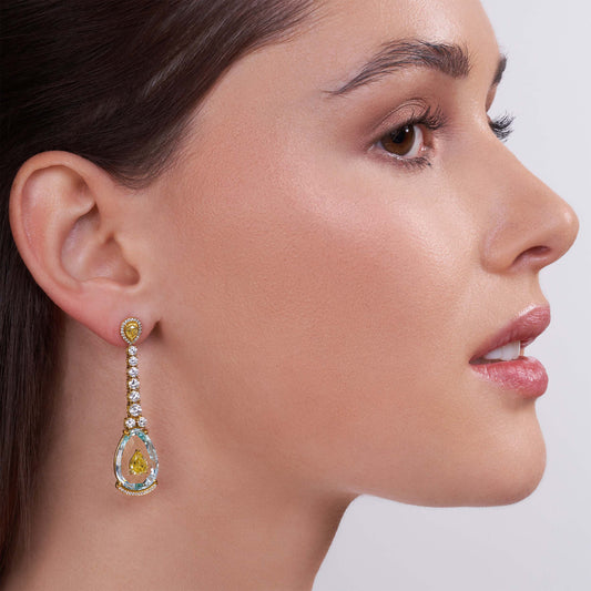 Our illustrious collection allows light to scintillate across two inlaid gemstones intensifying their rare beauty. faceted with absolute precision, each gem is meticulously cut to frame the other using a “stone in stone” technique and seamlessly set to reveal and magnify their brilliance.