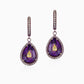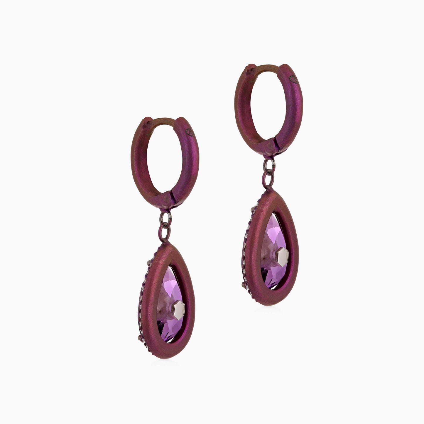 A pair of pear shaped diamonds set into two radiant amethysts, delicately descending from pavé diamond loops in titanium.