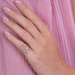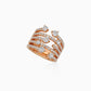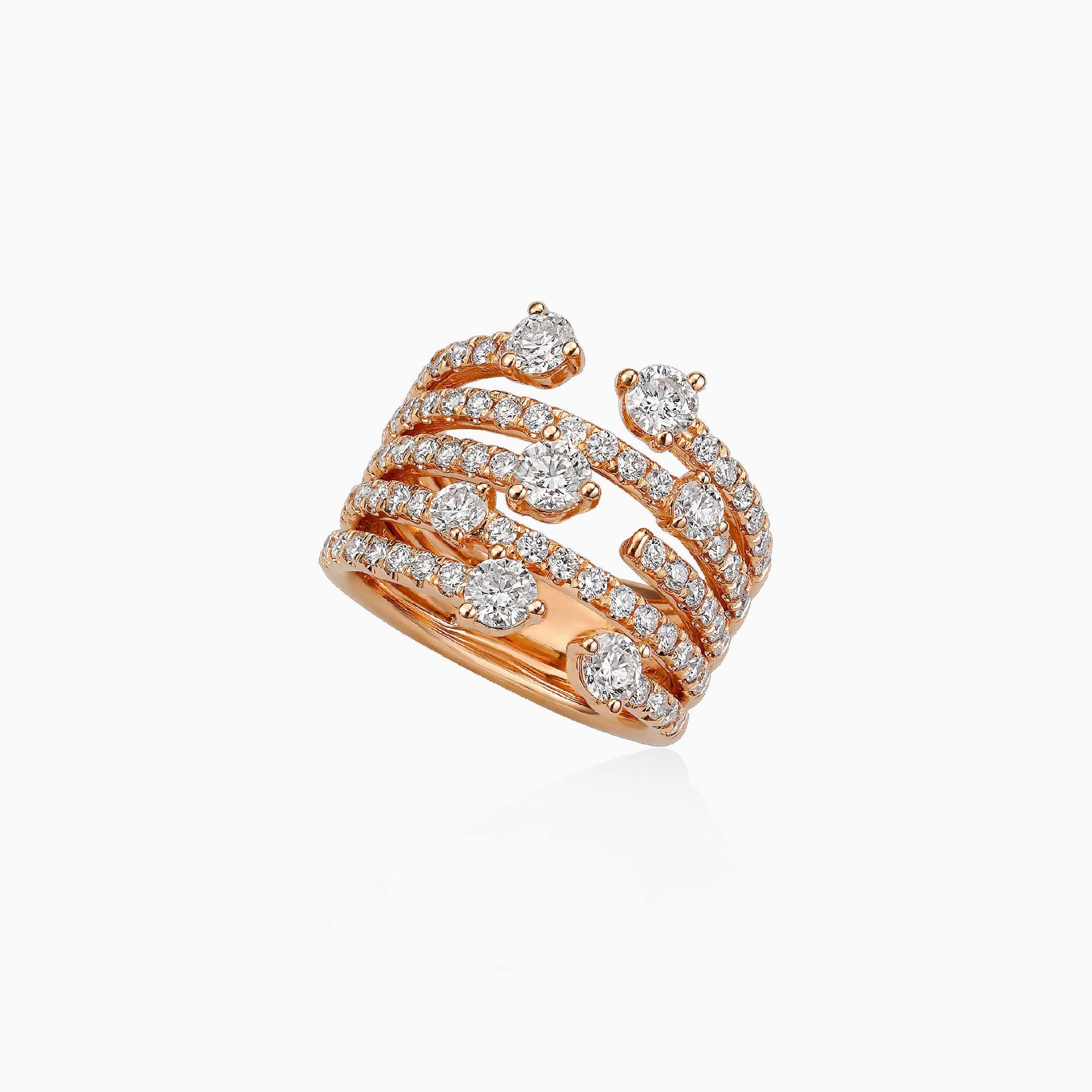 Crafted with spiral rows of round diamonds set in rose gold, this unique ring exudes elegance and charm.