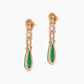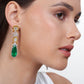 Earrings crafted with vertical rows of rose-cut diamonds, alternating with rims of Fancy Orange Yellow and Fancy Pink diamonds, gracefully descending with emerald drops totalling 26.16 carats, set in yellow and white gold.